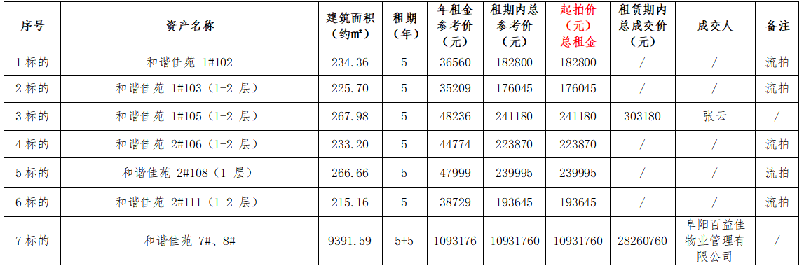 受委托,茲于2026年2月12日發(fā)布公告,定于2026年3月5日對阜陽市城市資產(chǎn)投資經(jīng)營有限責(zé)任公司2026年度第一批資產(chǎn)租賃權(quán)實(shí)施公開拍租,現(xiàn)將相關(guān)結(jié)果予以公示如下: